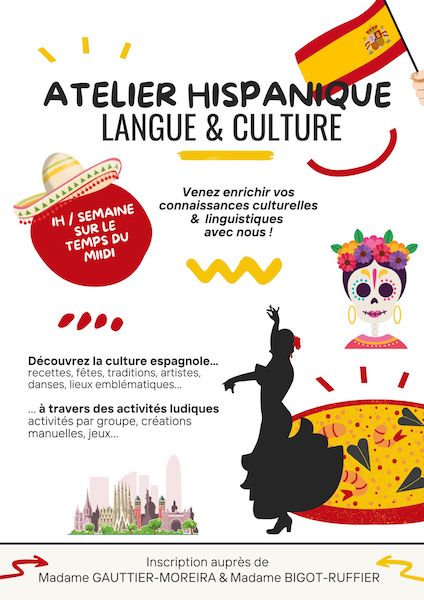 Afin d’enrichir vos connaissances culturelles et linguistiques en espagnol, nous vous proposons à nouveau cette année de participer à notre « Atelier hispanique, langue & culture » .