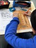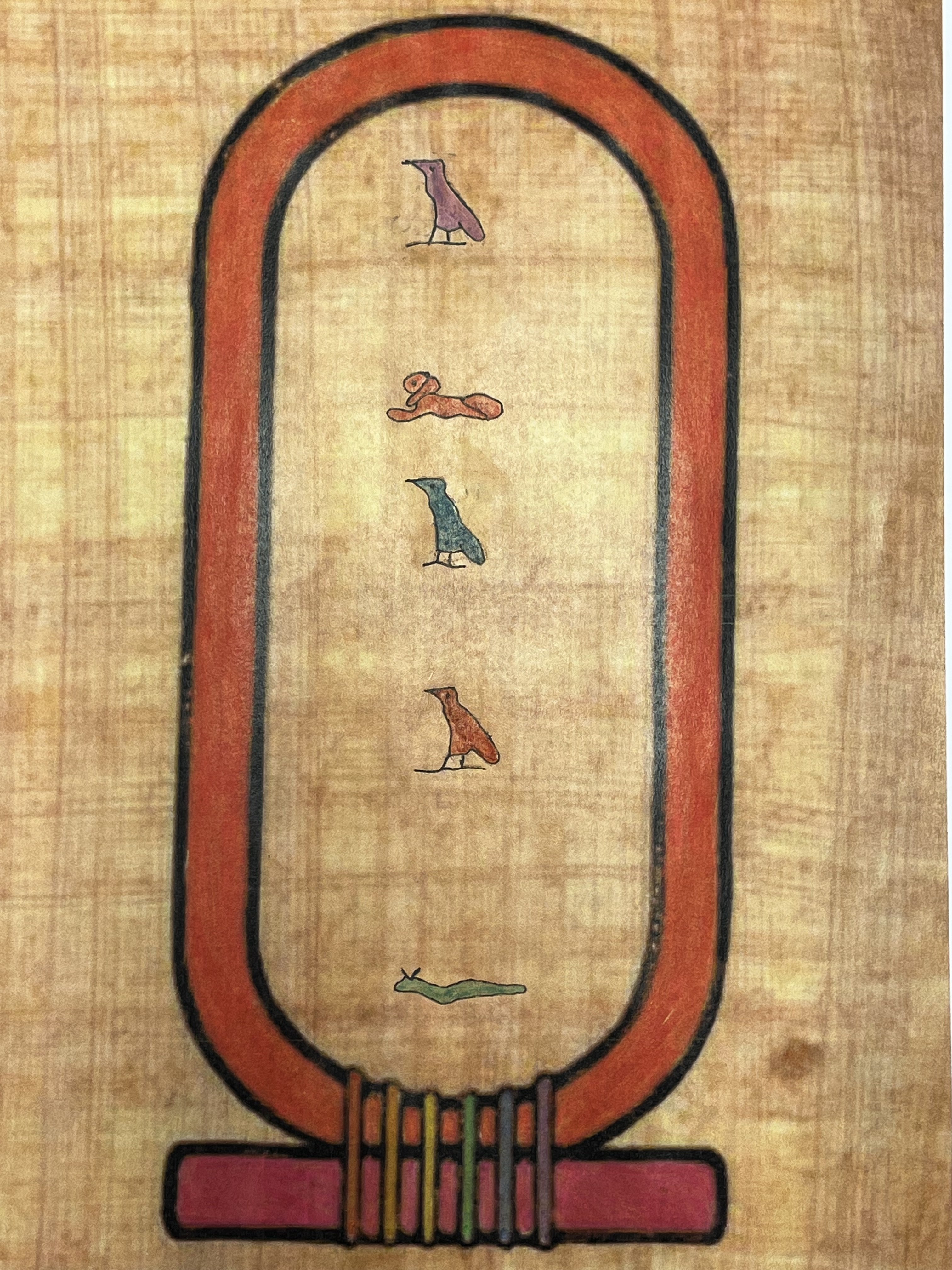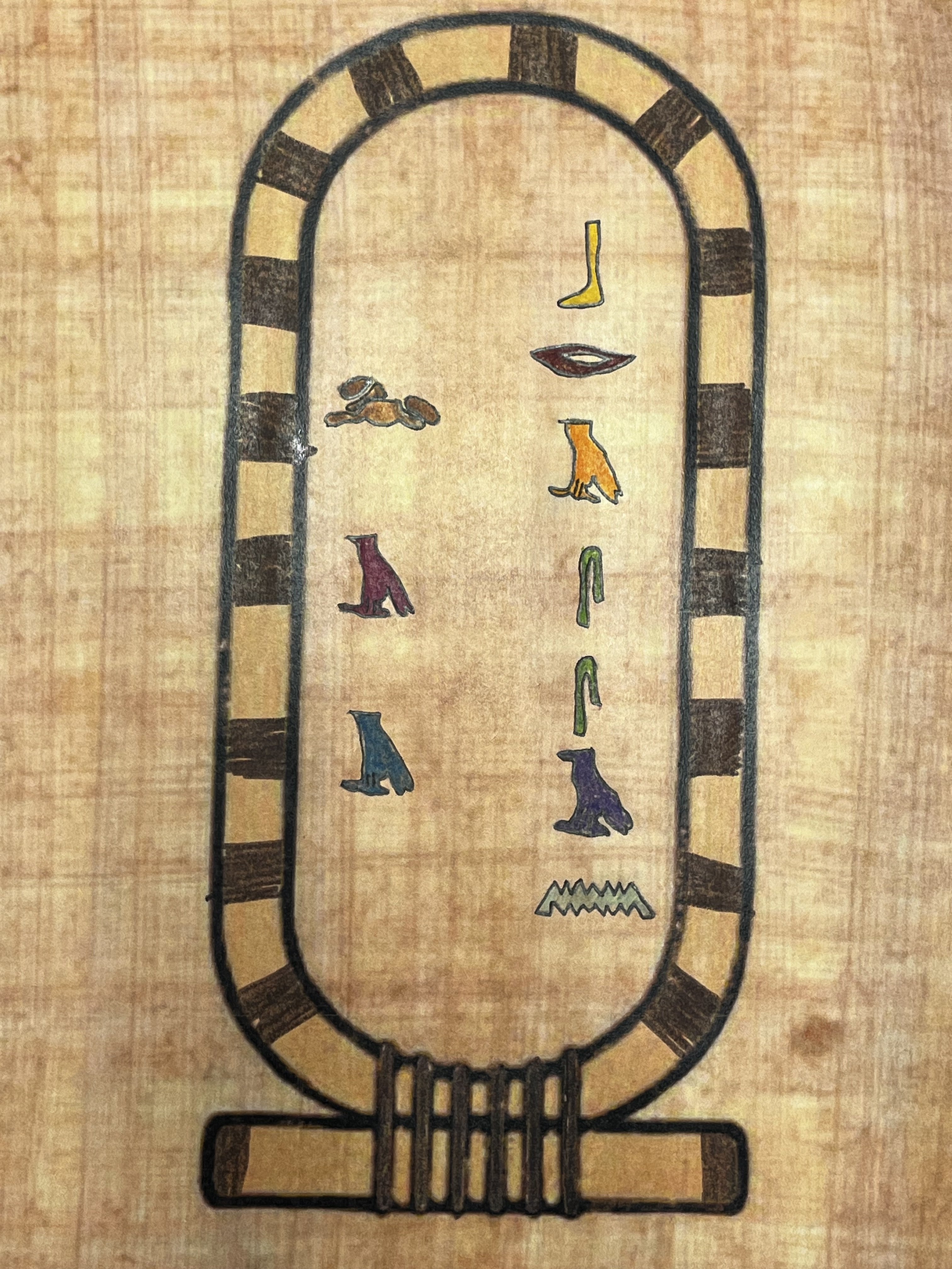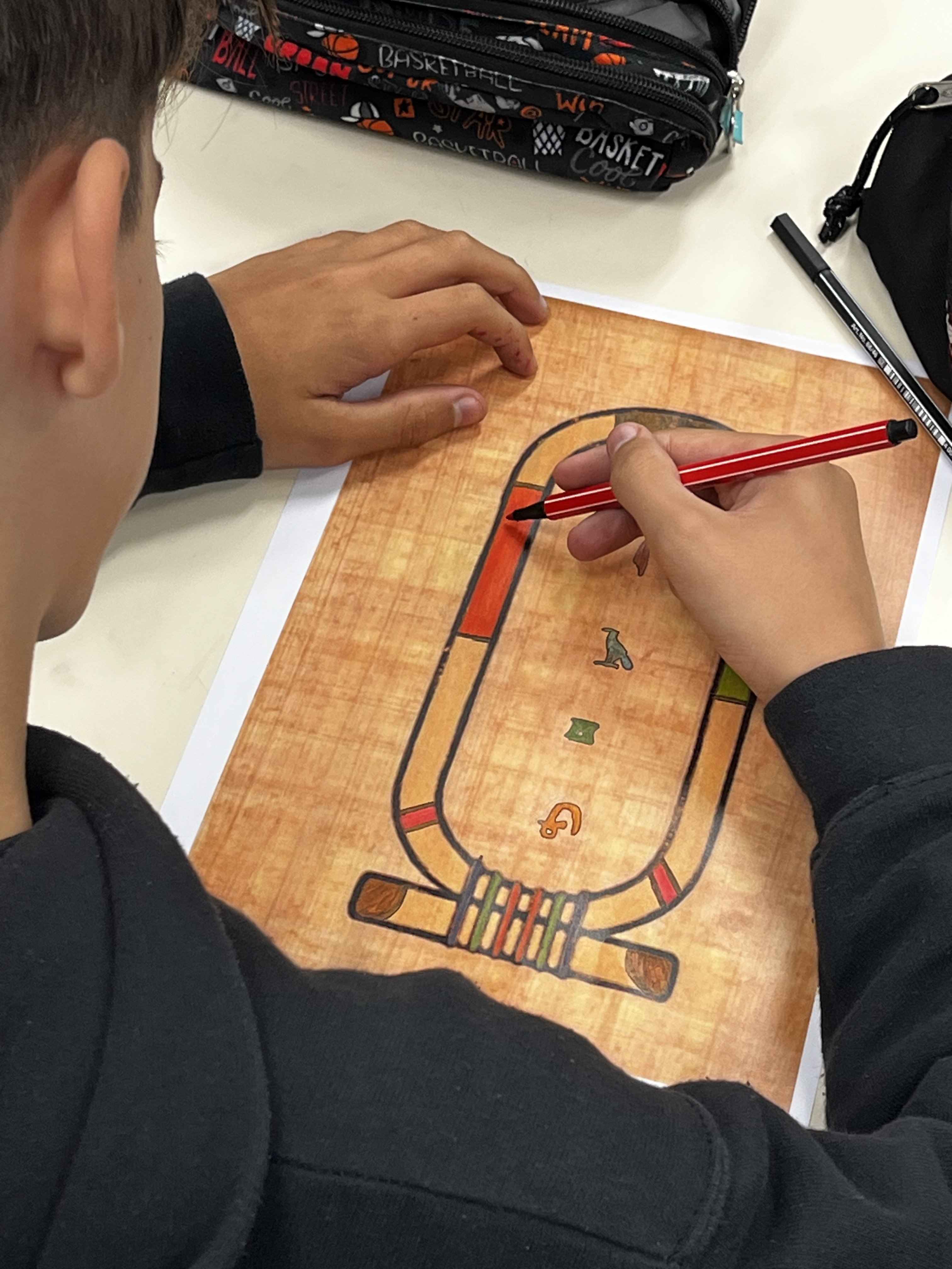 Lors d’une première séance d’une heure, ils se sont "essayés", sur des facsimilés de papyrus, aux hiéroglyphes, apparus en Egypte, réalisant pour certains, de véritables œuvres d’art, comprenant mieux le travail de traduction réalisé avant eux par le français Jean François CHAMPOLLION, en 1822, grâce à la pierre de Rosette, découverte dans le delta du Nil.